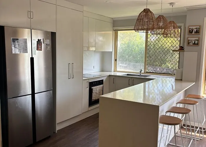 While staying at the Caloundra West villa, guests are welcome to make use of a fully-fitted kitchen with a fridge, an oven, and kitchenware for self-catering. Daniel St Seafood Market is a seafood restaurant serving Australian dishes just 13 minutes' stroll from Sunset Views, 5 Mins To Beaches, Quirky Retreat villa. The accommodation is also just near Mark Road near Newing Way bus station.